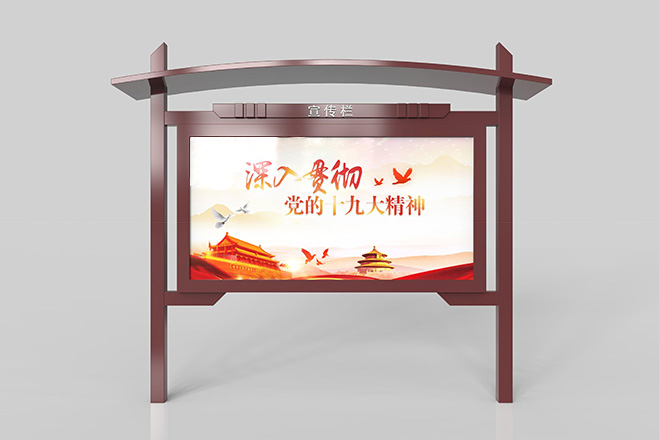 更多宣傳欄是一種VI應用,是組織或企業單位等進行自我宣傳的有效手段,常被應用于街道,工廠等公共場所;一般采用不銹鋼為框架,鋼化玻璃或者耐力板為面板,鋁合金為頂棚,面板可以打開更換宣傳畫面。現如今,宣傳欄廣泛應用于學校、小區、會議館、展廳等各個場地。